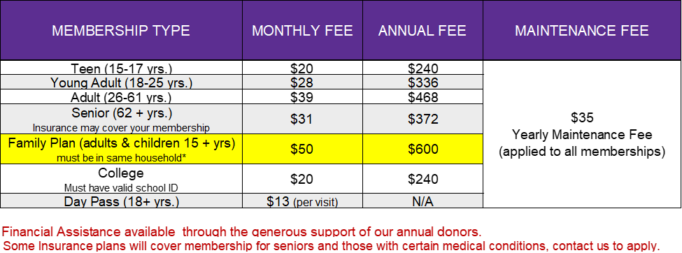 * Las solicitudes de membresía deben entregarse en nuestro mostrador de membresía EN PERSONA; En el momento de la presentación, se tomará una foto y se le pedirá que realice un pago.